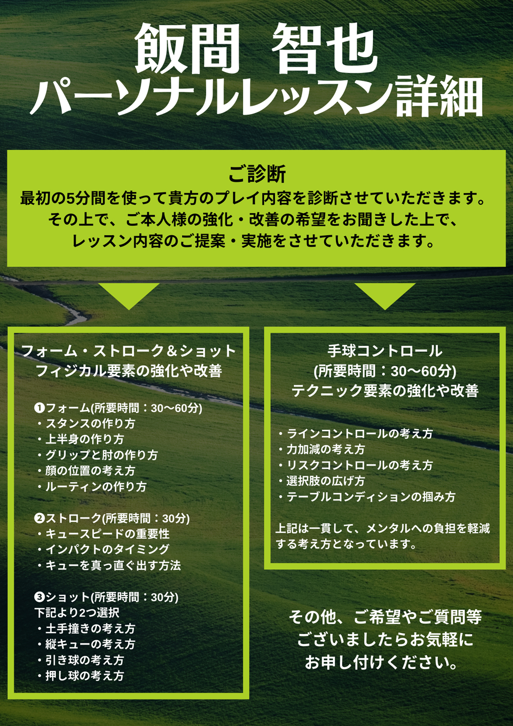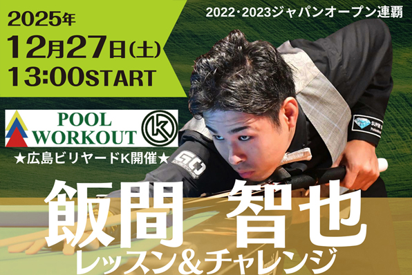 「<JPBAトッププロ>飯間智也ビリヤードレッスン&チャレンジ」開催します!