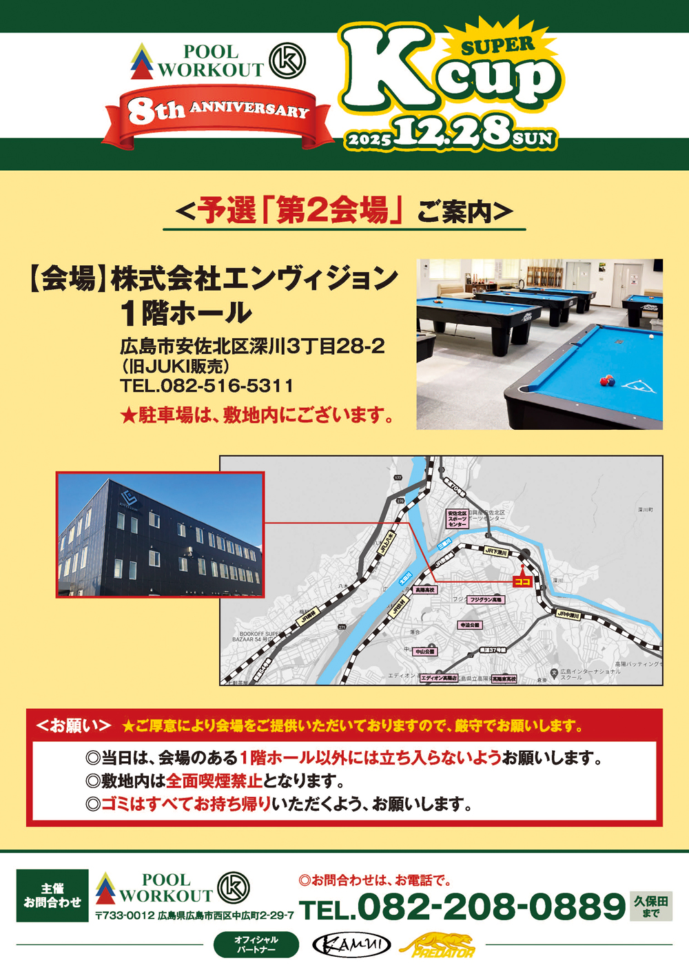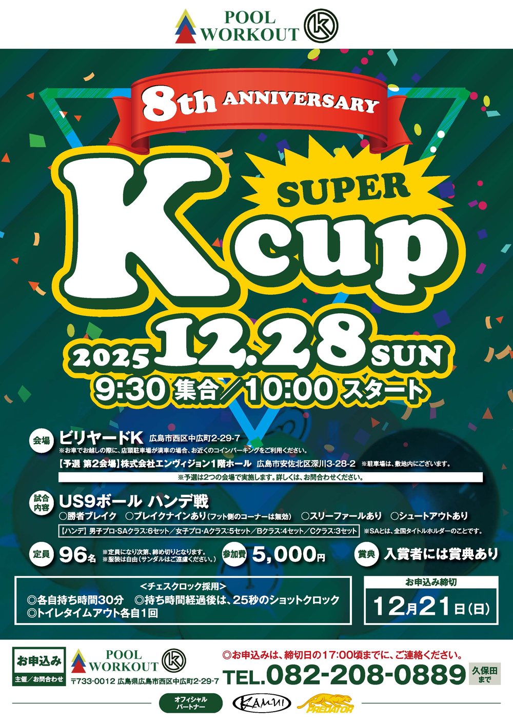 「ビリヤードK(西区中広)」は8周年を記念し、お客様への感謝を込めて「スーパーK-cup」を開催を開催いたします。