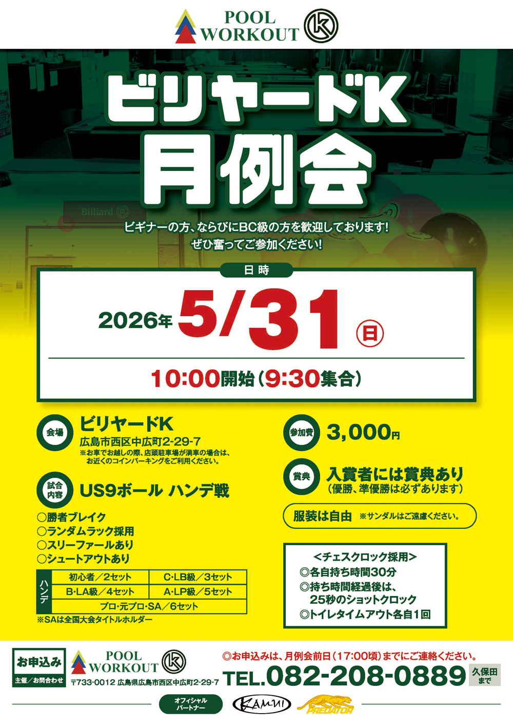 2. ビリヤードKビリヤードK-月例会「2026年1月」のご案内